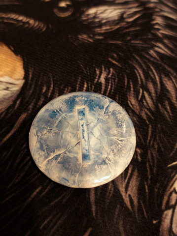 Design a zpracování: Tento kousek je vizuálním protipólem ohnivých run v naší kolekci. Imituje kus surového, hlubokého ledovce, který byl právě vysekán ze stěny. Povrch je drsný, pokrytý realistickou námrazou a hlubokými prasklinami. Runa Isa (jednoduchá svislá linie) uvnitř září intenzivním studeným modro-bílým světlem, které připomíná mrazivou energii sálající z hluboké trhliny v ledu. Tento "Glow" efekt nehřeje, ale vyzařuje mrazivý klid.