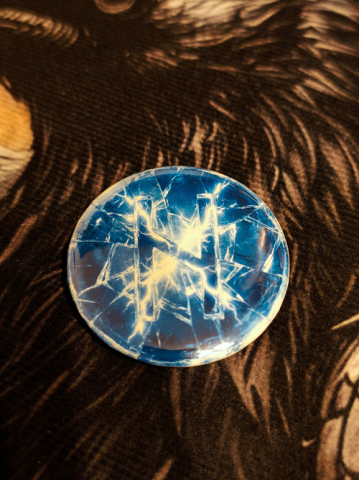 Design a zpracování: Tento motiv přináší do kolekce chladnou sílu severu. Imituje kus prastarého, hlubokého ledovce, který byl roztříštěn nárazem obrovské energie. Povrch je tmavě modrý, poloprůsvitný, s ostrými prasklinami. Runa Hagalaz uvnitř září ostrou, bílo-modrou barvou, připomínající blesk zamrzlý v ledu. Tento "Glow" efekt je studený, pronikavý a nekompromisní – přesný opak hřejivé runy Fehu.