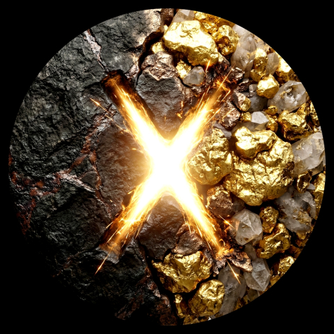 Design a zpracování: Tento motiv je vizuálně nejdramatičtějším kouskem edice. Zobrazuje brutální, magickou fúzi dvou odlišných materalit: levá polovina je tvořena temnou, surovou skálou s žilami železa, zatímco pravá je shlukem ryzích zlatých valounů a surových krystalů křemene. Runa Gebo (ve tvaru X) není jen vyrytá – je to oslepující magický svár, který tyto dva světy násilím drží pohromadě. Zevnitř srší intenzivní bílo-zlatá energie a jiskry, jako by v tom místě právě probíhala kovářská magie bohů.