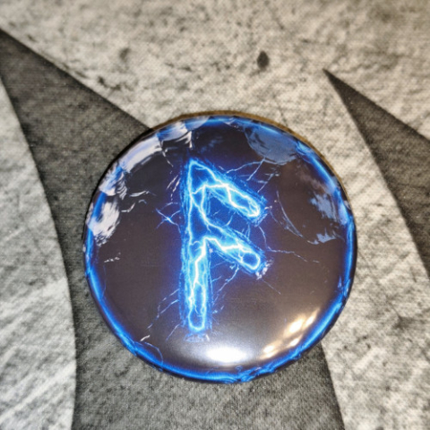 Design a zpracování: Tato placka působí tajemným a inteligentním dojmem. Motiv imituje černý vulkanický obsidián, temný a lesklý kámen s ostrými lomy. V kontrastu s temnotou září vytesaná runa pronikavým elektricky modrým světlem v odstínu cyan. Tento grafický efekt symbolizuje záblesk poznání, mentální sílu a magickou energii mysli. Placka má průměr 44 mm, kvalitní potisk s lesklou fólií a odolná kovová záda se špendlíkem.